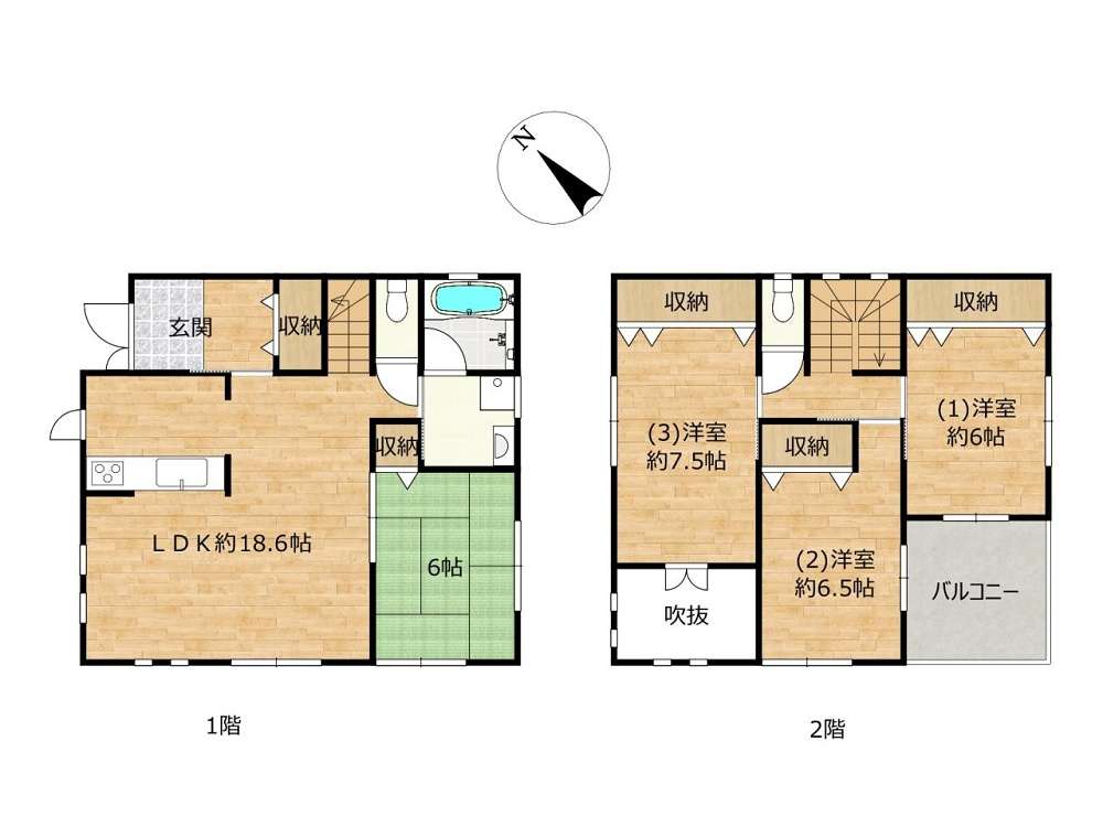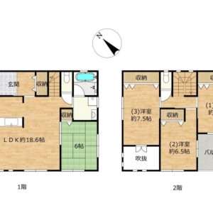 鴨田小学校エリア 収納多い お庭付き 土地46.92坪 4DK