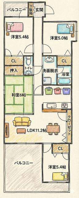 6和・5洋・5.4洋・5.4洋・11.2LDK |