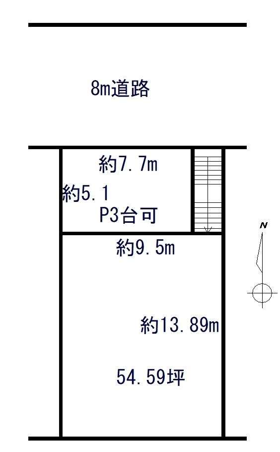 ☆前面道路幅員約8m、間口約9.5mの北向き