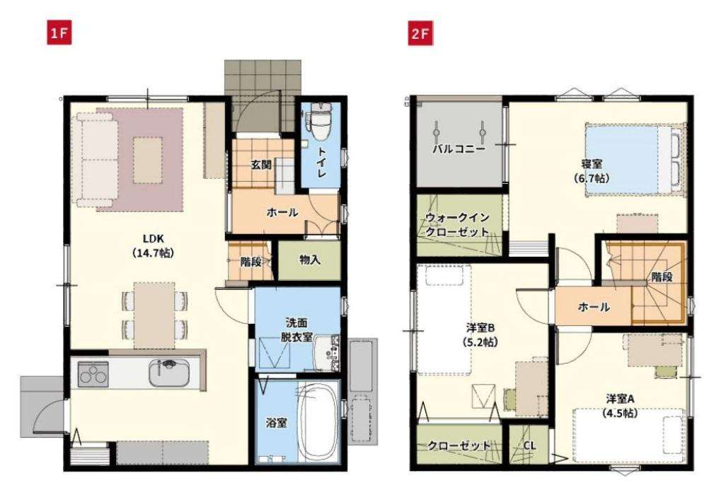 1階 14.7LDK / 2階 4.5洋・5.2洋・6.7洋 |