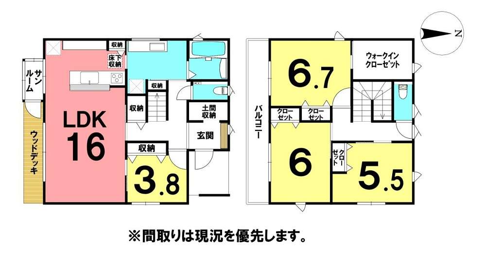 1階 16LDK・3.8洋 / 2階 5.5洋・6洋・6.7洋 |