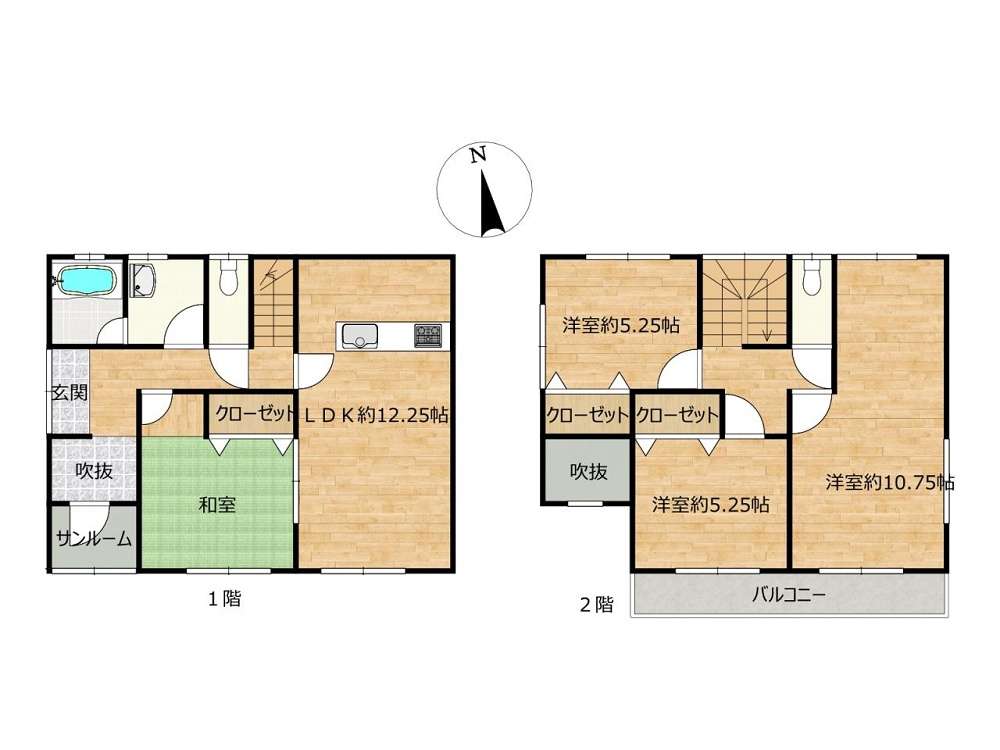 1階 和・12.2LDK / 2階 5.2洋・5.2洋・10.7洋 |