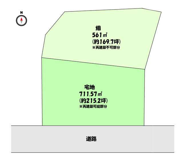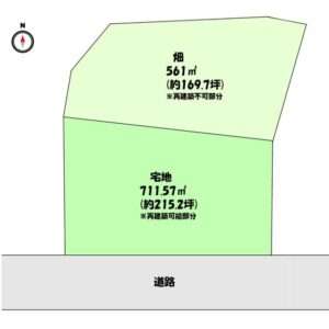 ※宅地部分711.57㎡(215.2坪) 畑561㎡(169.7坪)建築不可